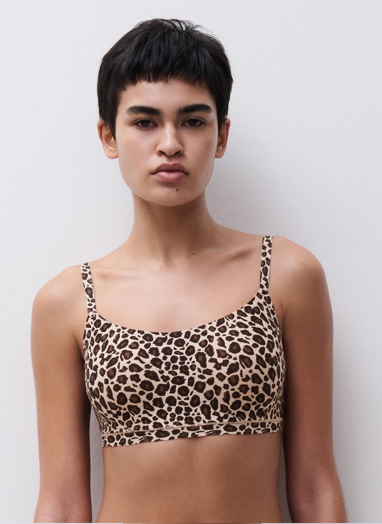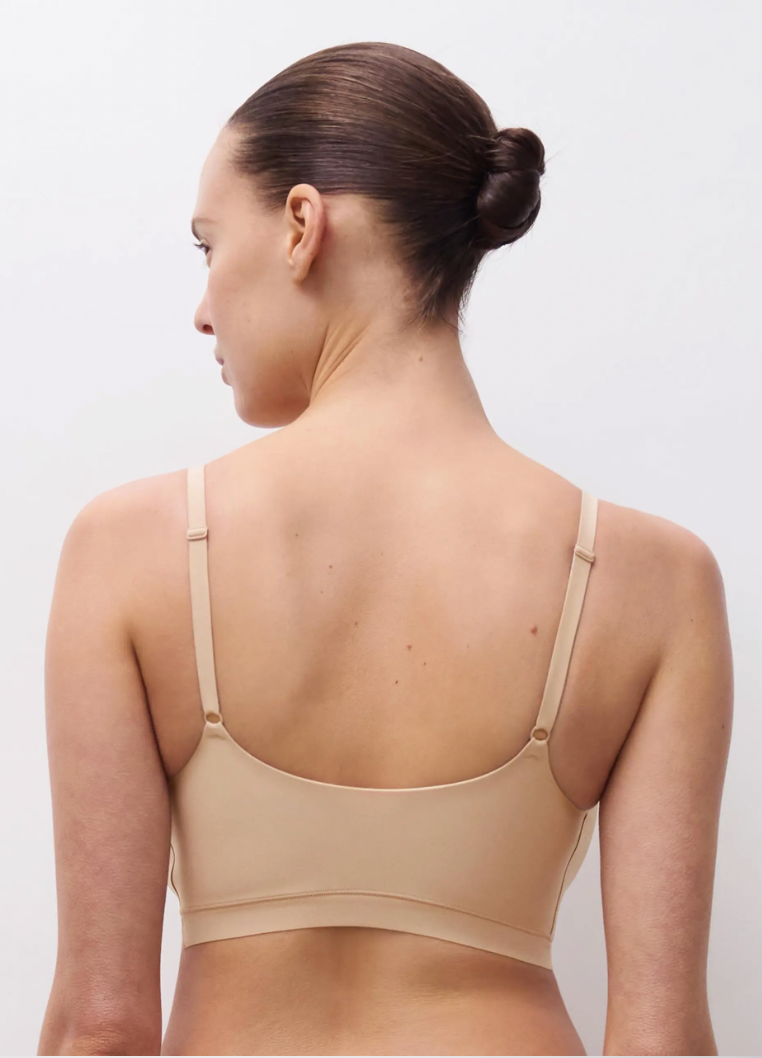 Sans armature et dotée de coques fines non amovibles, elle épouse délicatement la poitrine sans la comprimer.