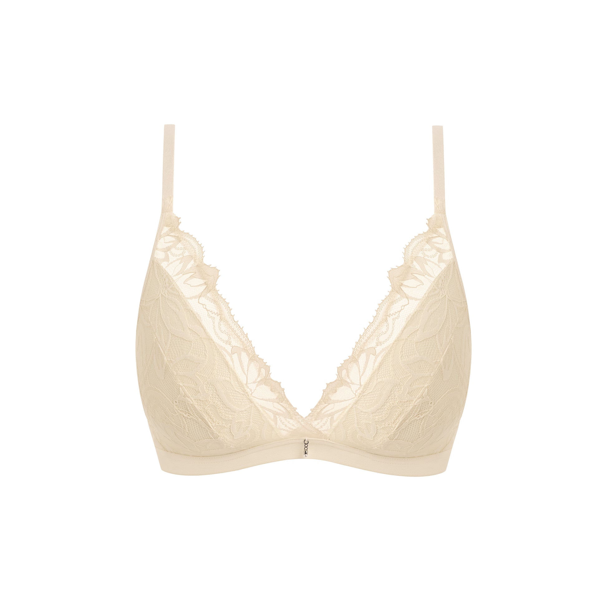 Conçu sans armatures, il offre un maintien léger et naturel, sublimé par une dentelle stretch festonnée et un élastique transparent qui souligne délicatement le décolleté.