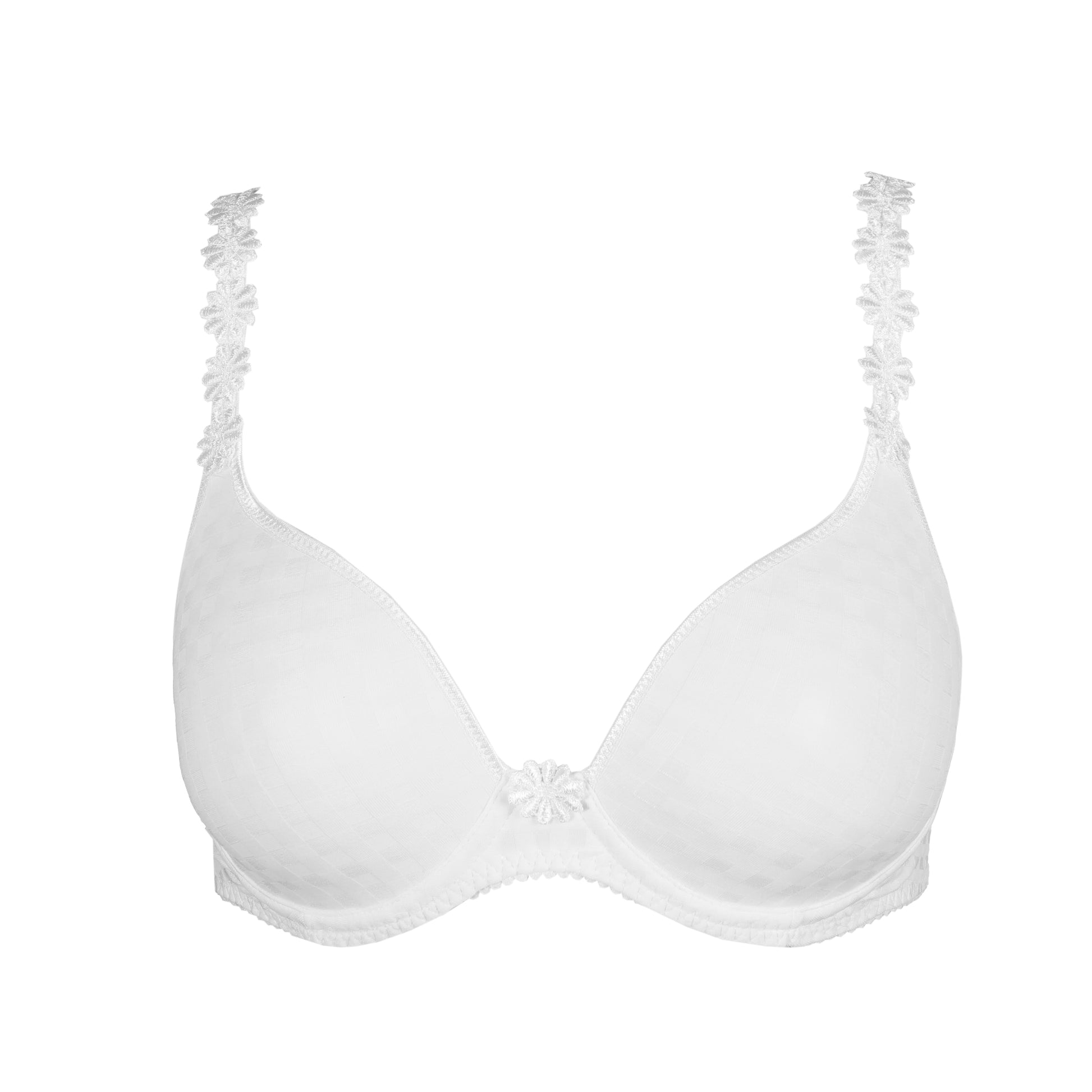 Signature absolue du modèle : ses bretelles ornées de marguerites, véritables bijoux de lingerie. Chaque marguerite est façonné à la main par un brodeur suisse, pour un rendu à la fois délicat, lumineux et unique.